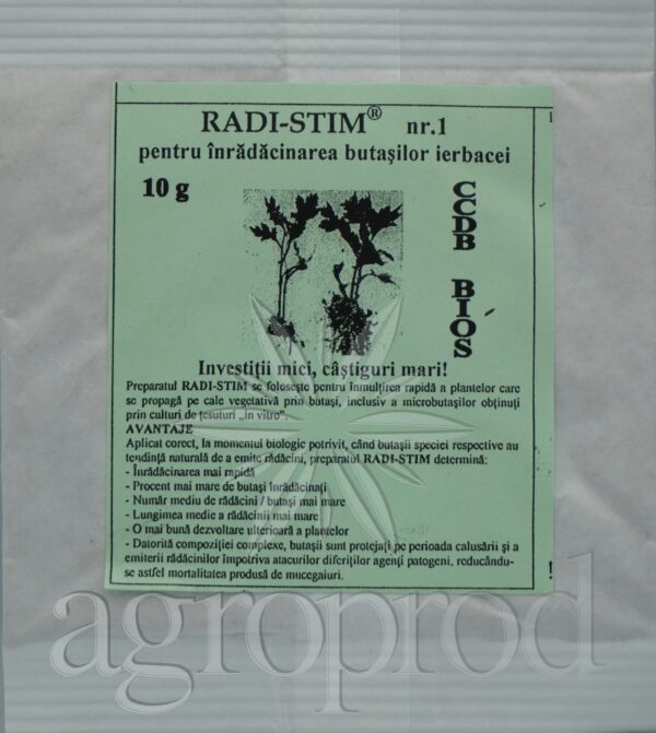 RADI-STIM este un preparat specializat pentru stimularea rapidă a înrădăcinării plantelor propagate pe cale vegetativă prin butași, inclusiv microbutașii obținuți prin culturi „in vitro”. Varianta RADI-STIM Nr.1 este destinată butașilor ierbacei, oferind o soluție completă pentru propagarea eficientă și sănătoasă a culturilor vegetative.